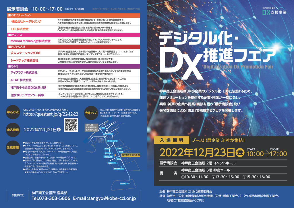 エリンサーブより神戸商工会議所主催の「デジタル化・DX推進フェア」のお知らせです。